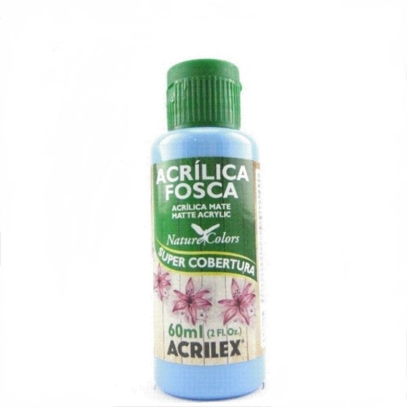 TINTA NATURE COLORS - Tinta acrílica fosca com alta cobertura. Secagem rápida, pode ser lixada. Apresenta 95 cores. Dispensa preparação prévia do fundo. Ideal para trabalhos de artesanato. Pode ser aplicada em diversos materiais, como: madeira, papel,cerâmica, isopor, gesso, couro, cortiça, vidro e plástico (preparados com Primer Acrilex).