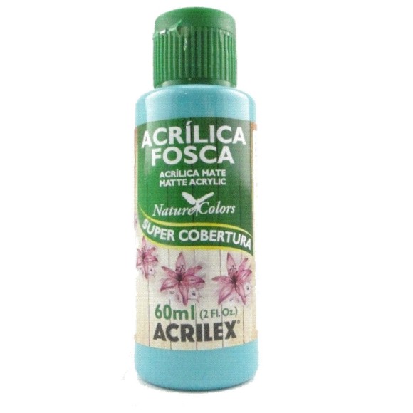 TINTA NATURE COLORS - Tinta acrílica fosca com alta cobertura. Secagem rápida, pode ser lixada. Apresenta 95 cores. Dispensa preparação prévia do fundo. Ideal para trabalhos de artesanato. Pode ser aplicada em diversos materiais, como: madeira, papel,cerâmica, isopor, gesso, couro, cortiça, vidro e plástico (preparados com Primer Acrilex).
