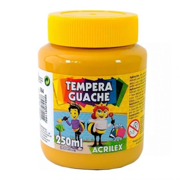 Foi desenvolvida para trabalhos artísticos e escolares. A Têmpera Guache Acrilex é um importante instrumento para o desenvolvimento da criatividade, coordenação motora e percepção visual das cores. Não é tóxica, é solúvel em água e disponível em 13 cores que são miscíveis entre si. Pode ser aplicada em papel, papel cartão, cartolina, gesso, madeira e cerâmica.