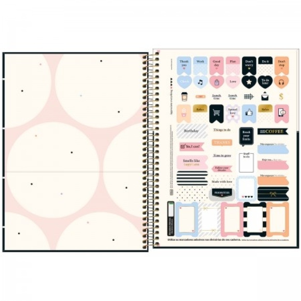 O Caderno Espiral Capa Dura Universitário 10 Matérias West Village 160 Folhas possui capa dura com a parte interna decorada, bolsa plástica para guardar trabalhos e anotações, folha com adesivos funcionais, folhas pautadas e espiral colorido. Ideal para o dia a dia na escola ou na faculdade